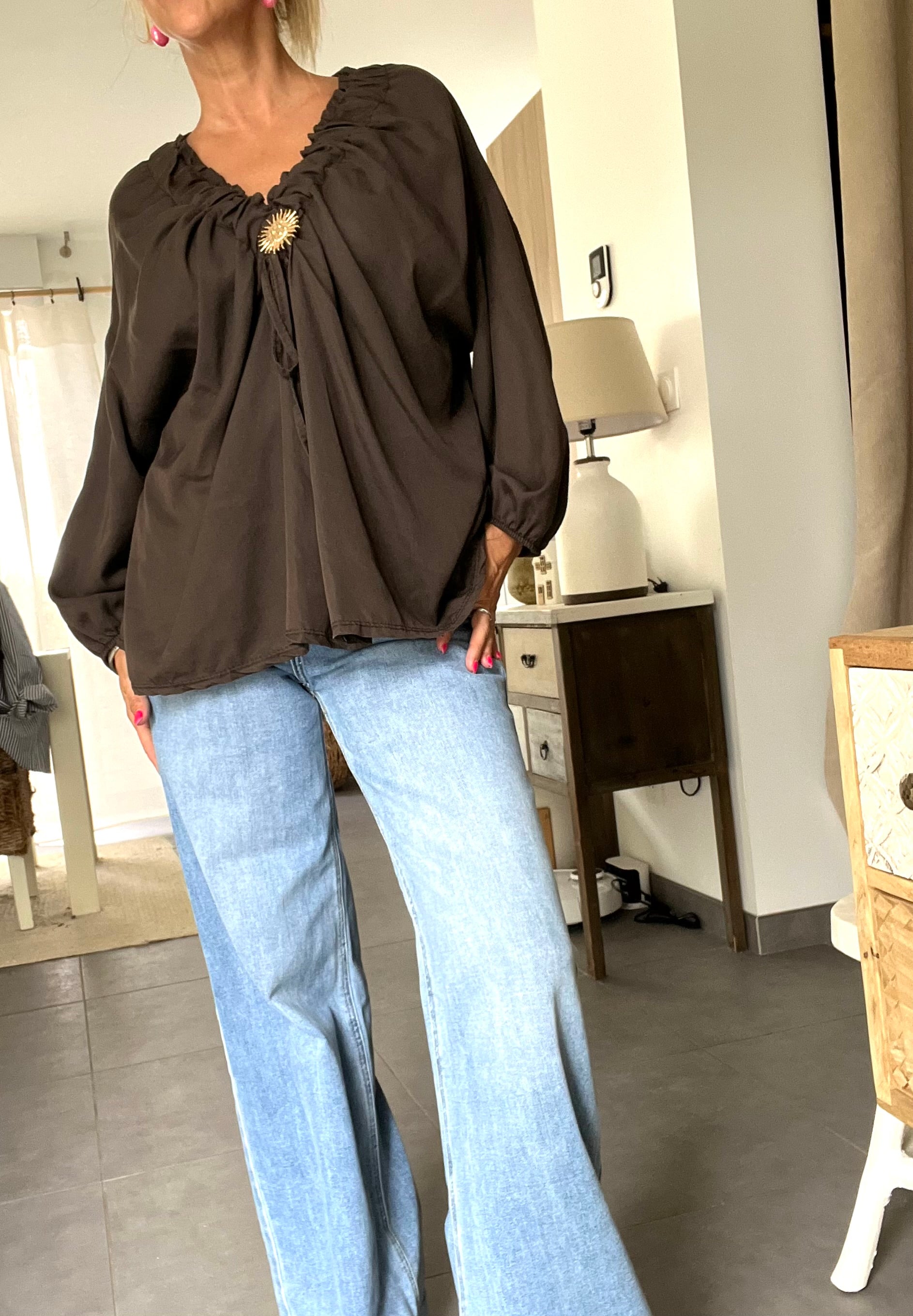 Blouse Élysia – Détail Soleil - Chocolat