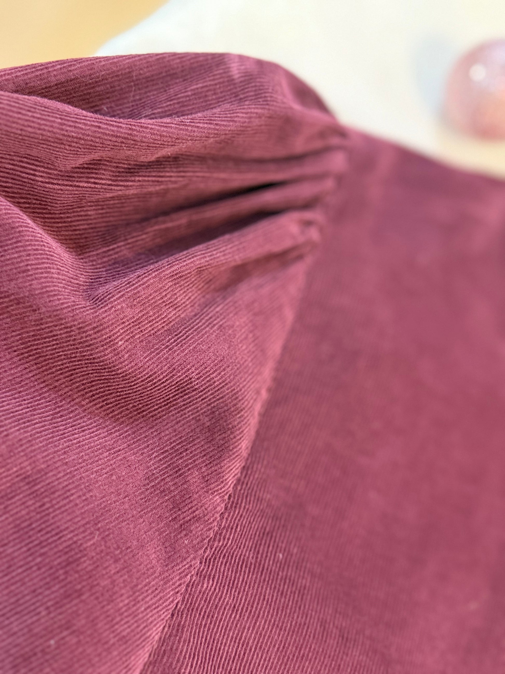 - ses manches longues légèrement bouffantes terminées par un poignet boutonné,