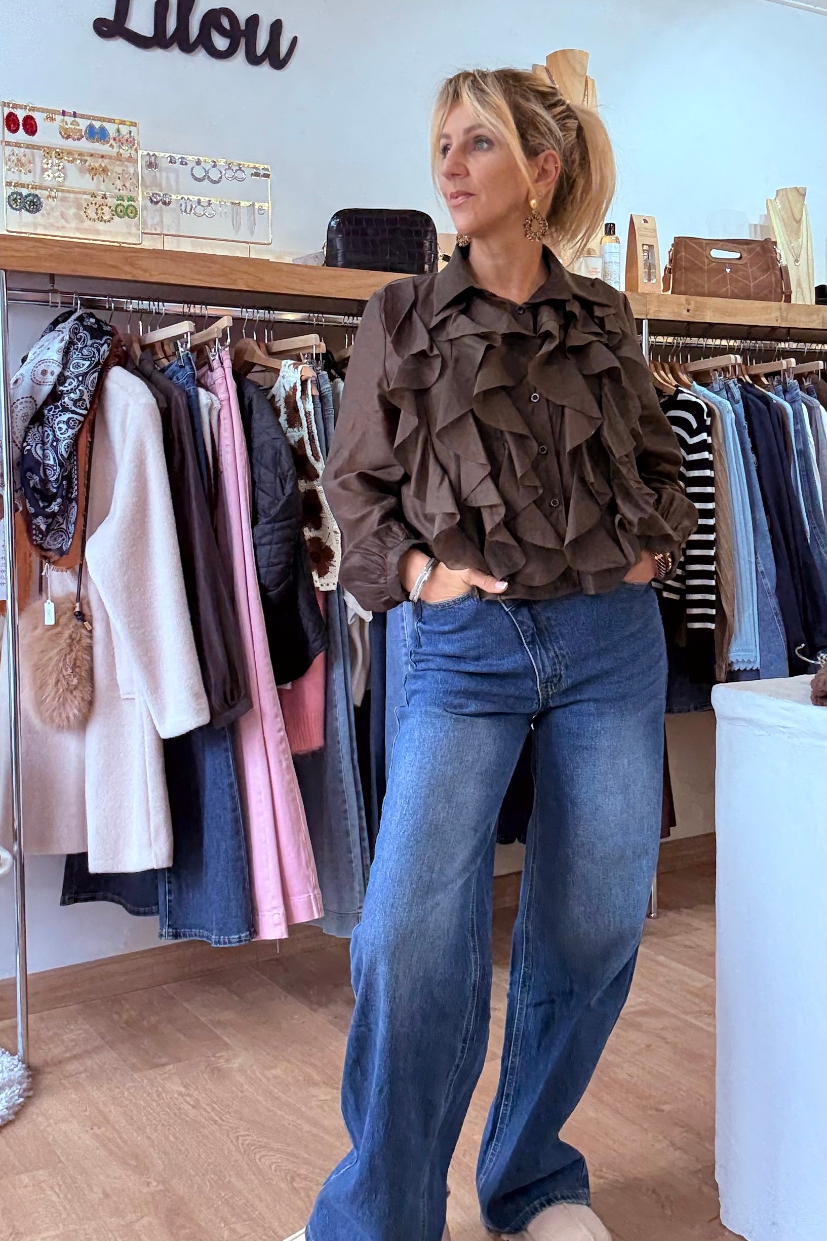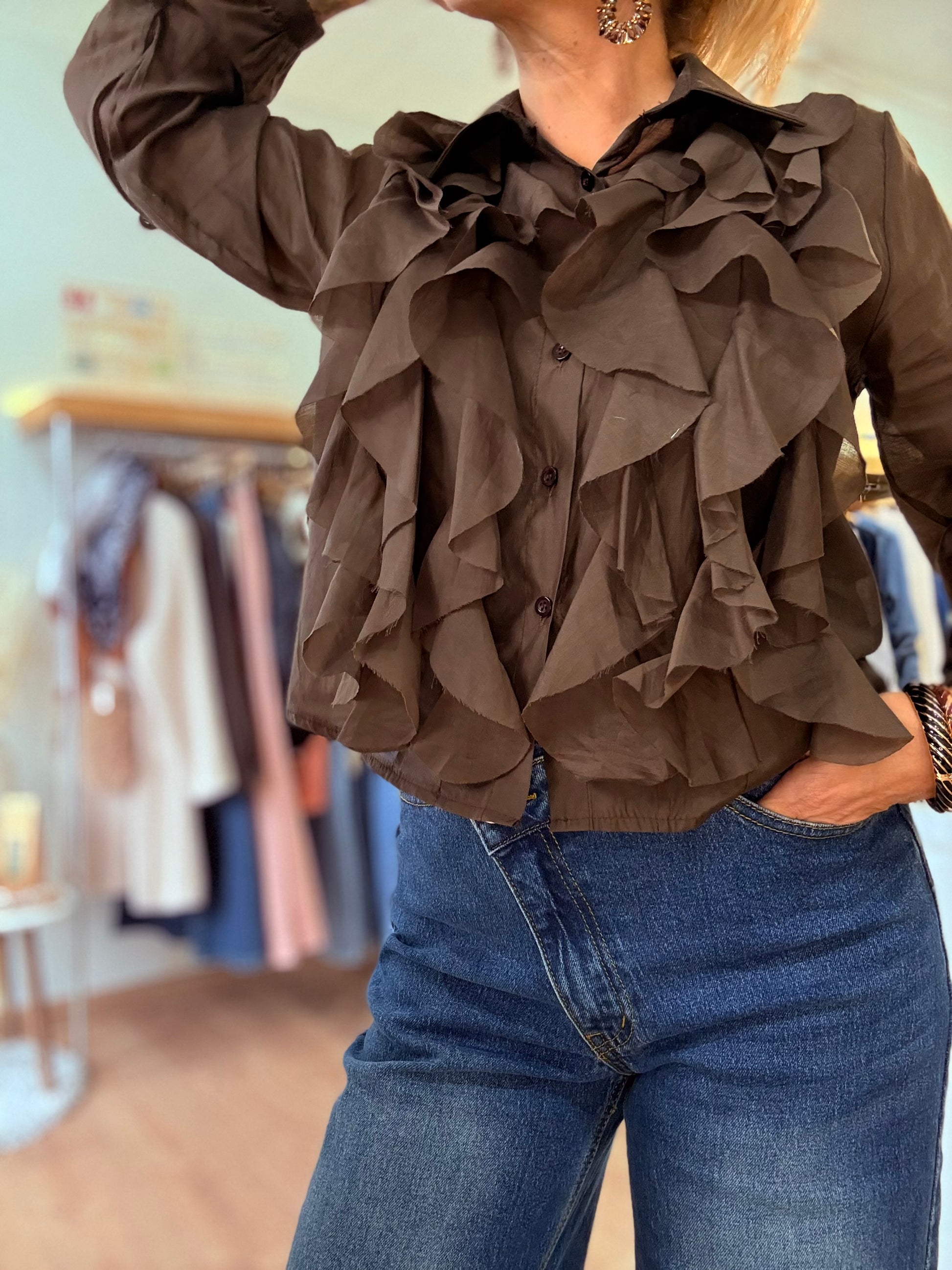 🌸 Cette blouse est parfaite pour apporter une touche sophistiquée à un jean ou à une jupe. Ses volants apportent du volume et du style tout en restant légère et agréable à porter.