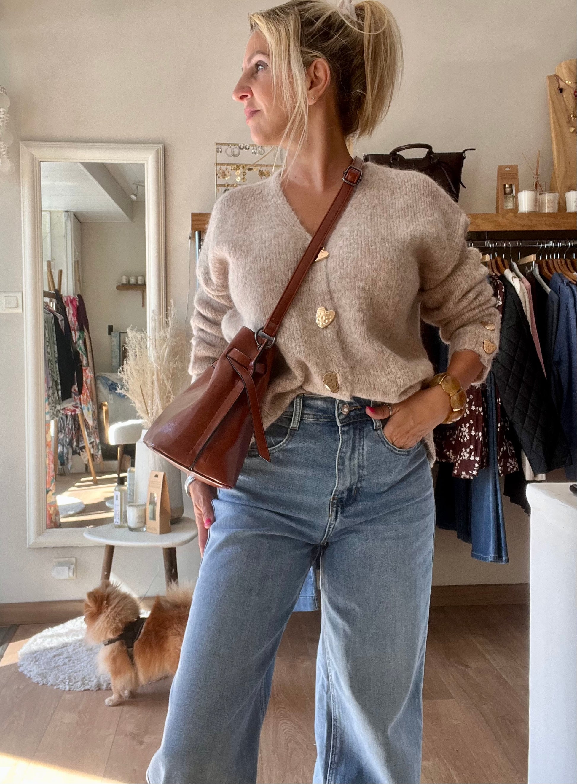Apportez une touche d’élégance à vos looks avec le gilet Bijou, un modèle chic et confortable qui se distingue par ses jolis boutons bijoux en forme de cœur.