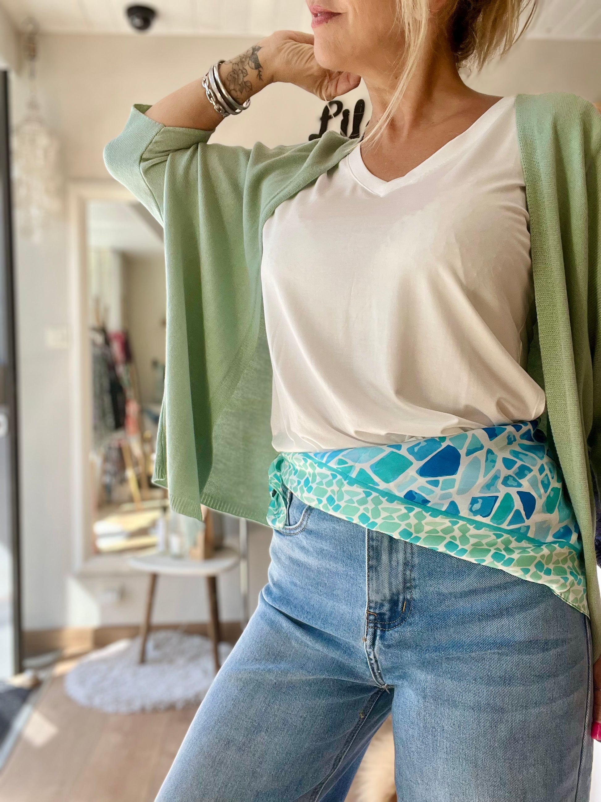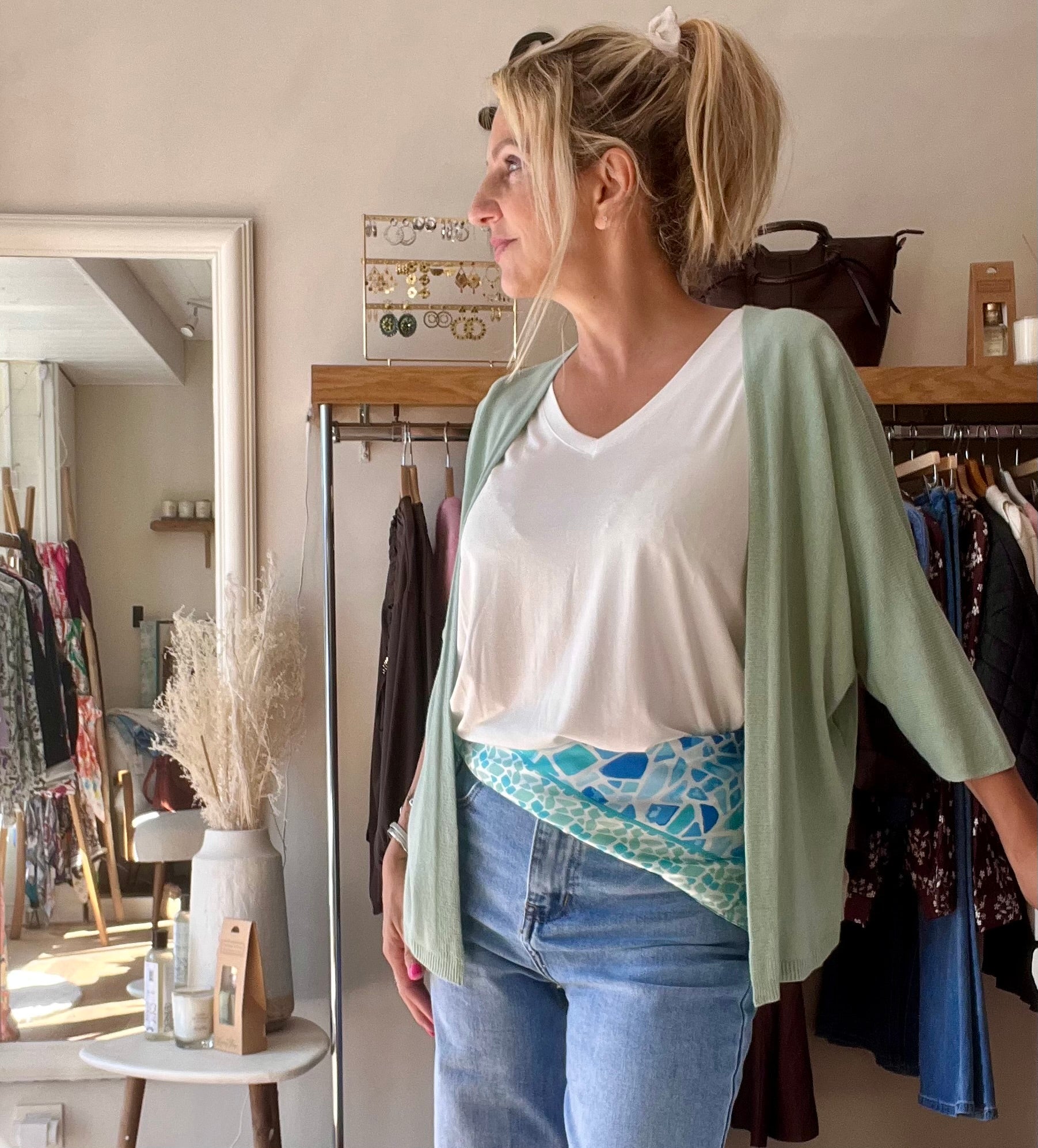 Un gilet fluide et élégant, parfait pour la mi-saison. Sa coupe ample et sa matière légère apportent confort et style, tout en mettant en valeur la silhouette. Il se porte aussi bien avec un jean qu’avec une jupe pour un look chic décontracté.