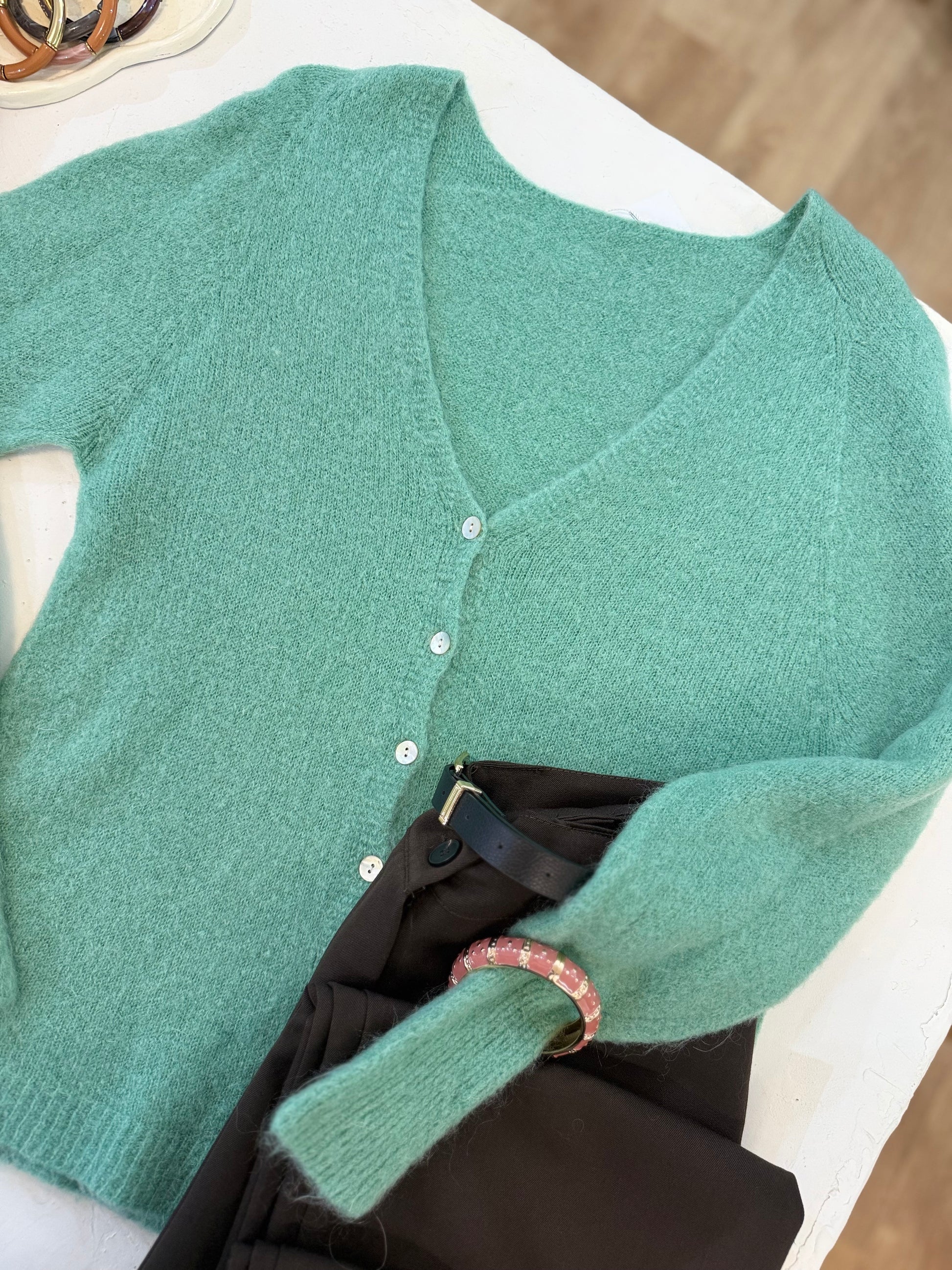 Le gilet Soline est une pièce tout en douceur, idéale pour réchauffer vos looks avec élégance. Sa maille mohair légère et moelleuse lui donne un côté cocoon irrésistible, tandis que sa coupe boutonnée et son décolleté en V apportent une touche féminine et intemporelle.