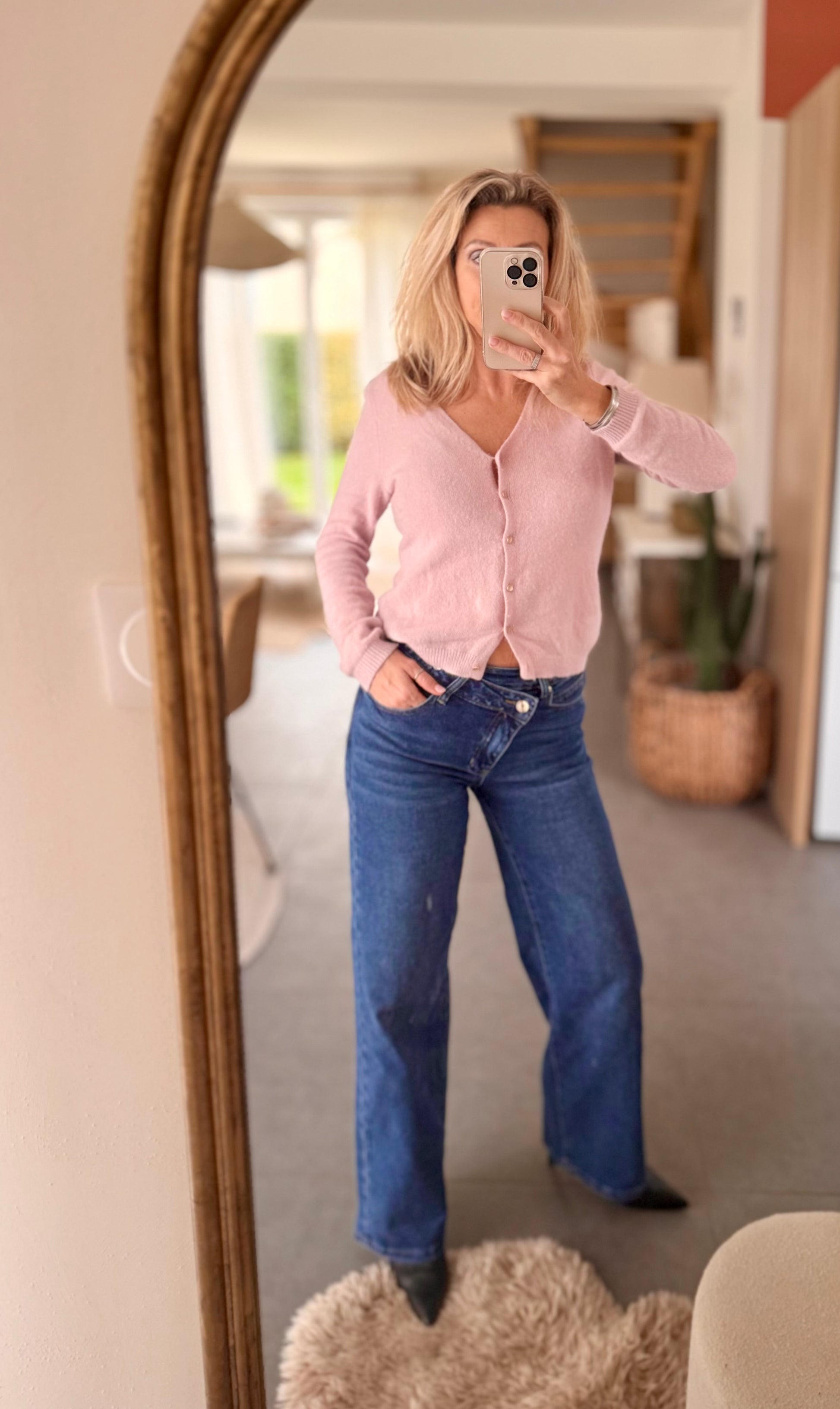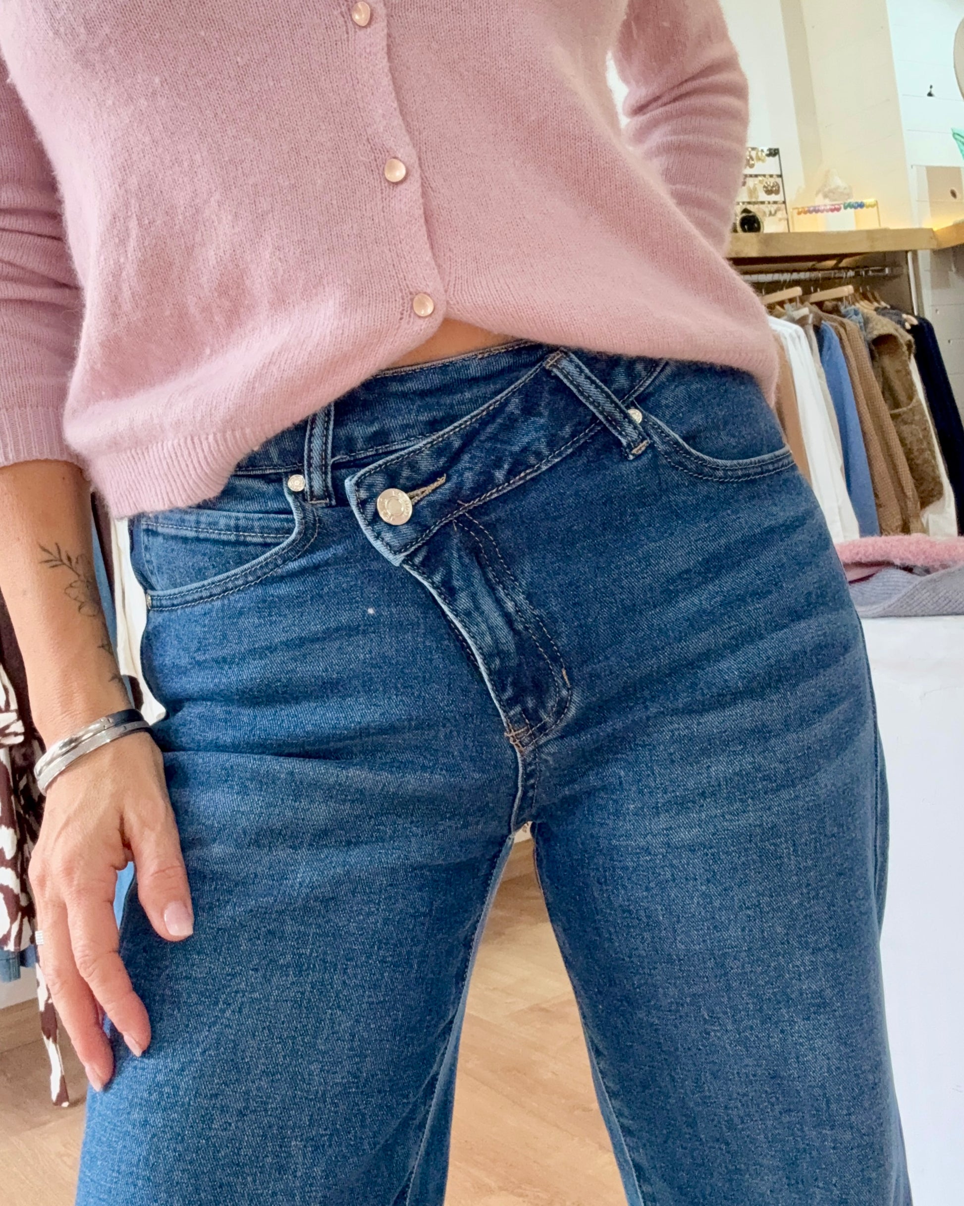 Le jean Livia est la coupe parfaite pour allonger la silhouette tout en restant ultra confortable. Taille haute, coupe droite légèrement évasée, il épouse les formes sans les marquer. Un basique chic à porter aussi bien avec un pull doux qu’une chemise fluide.