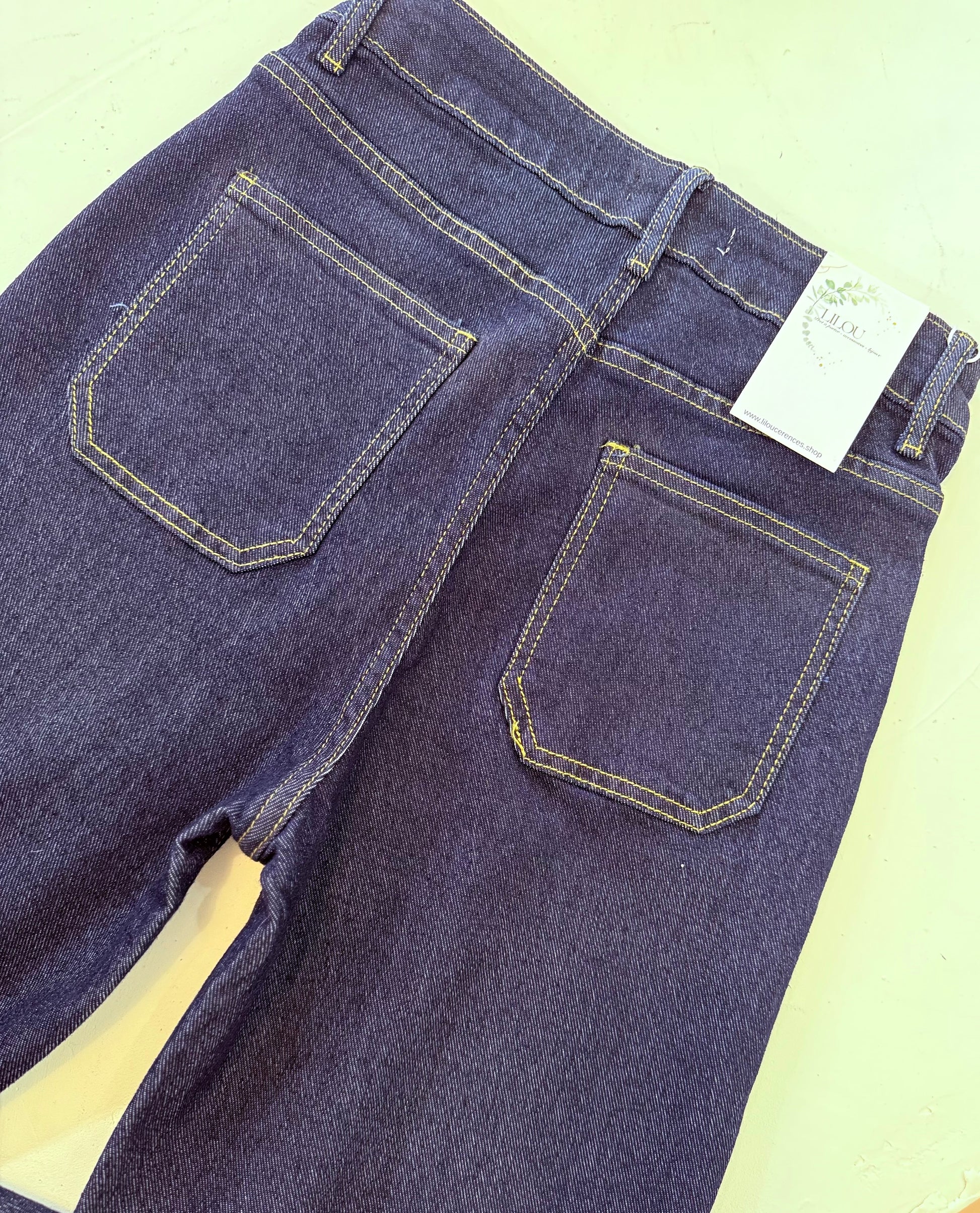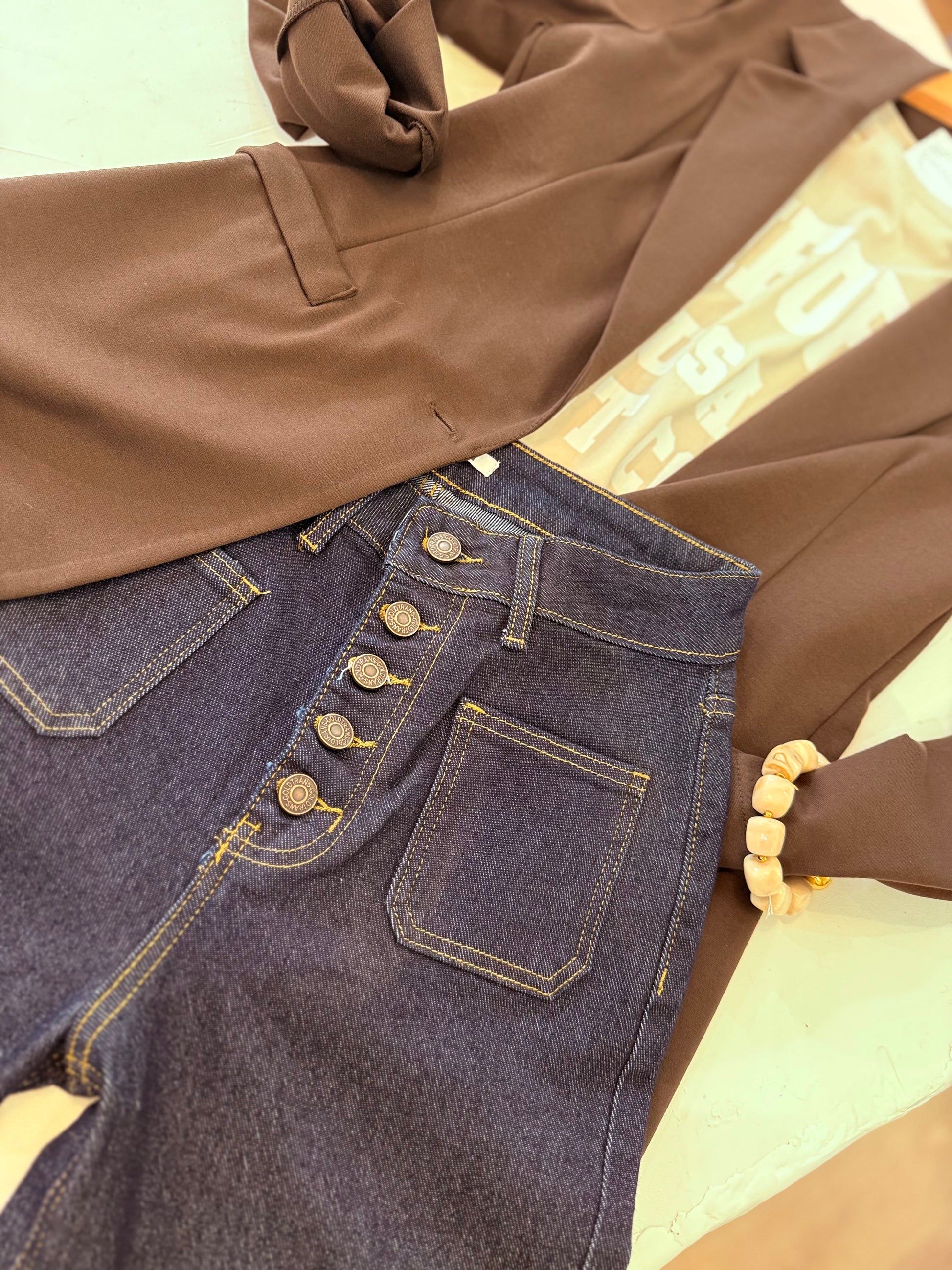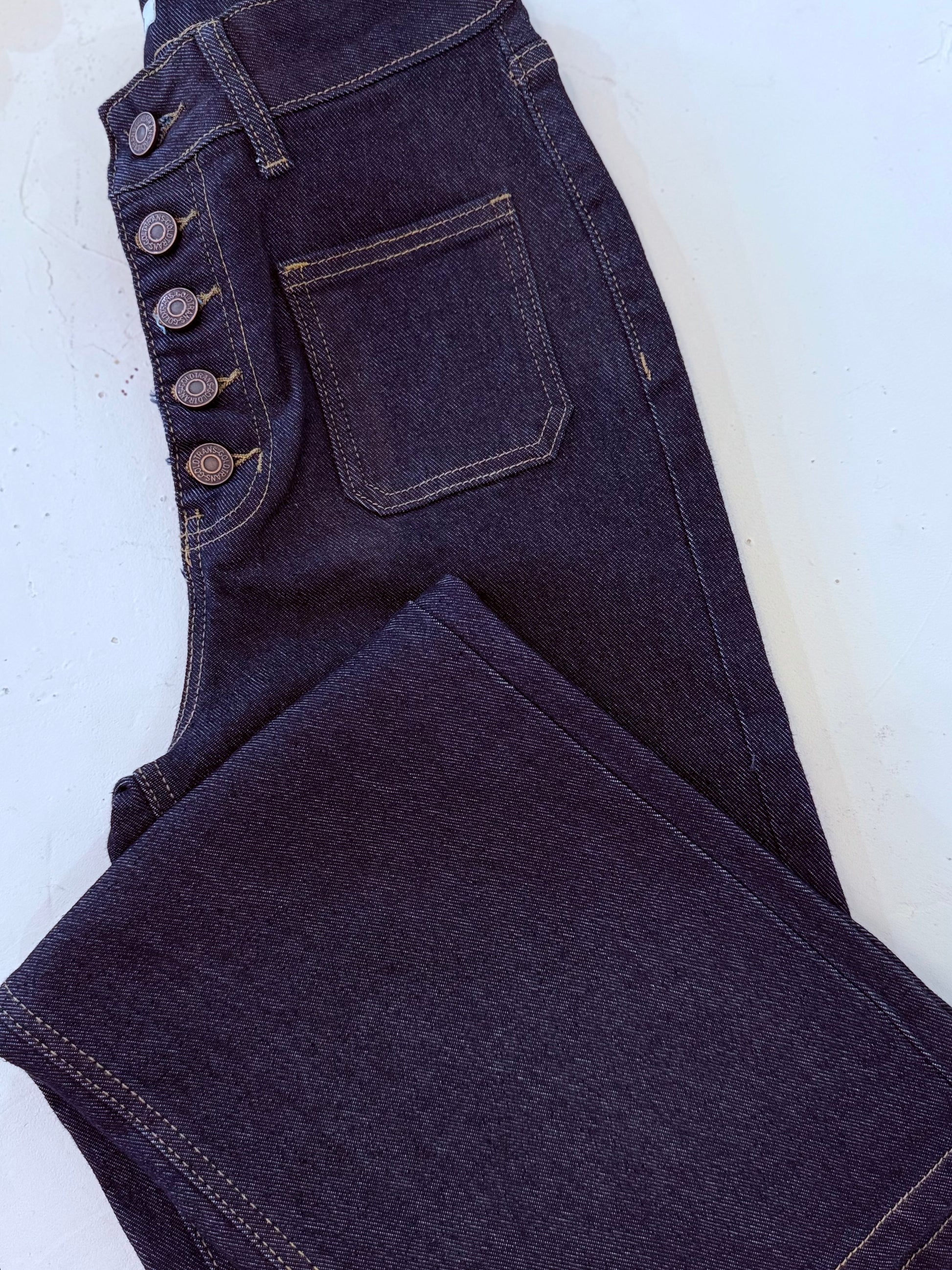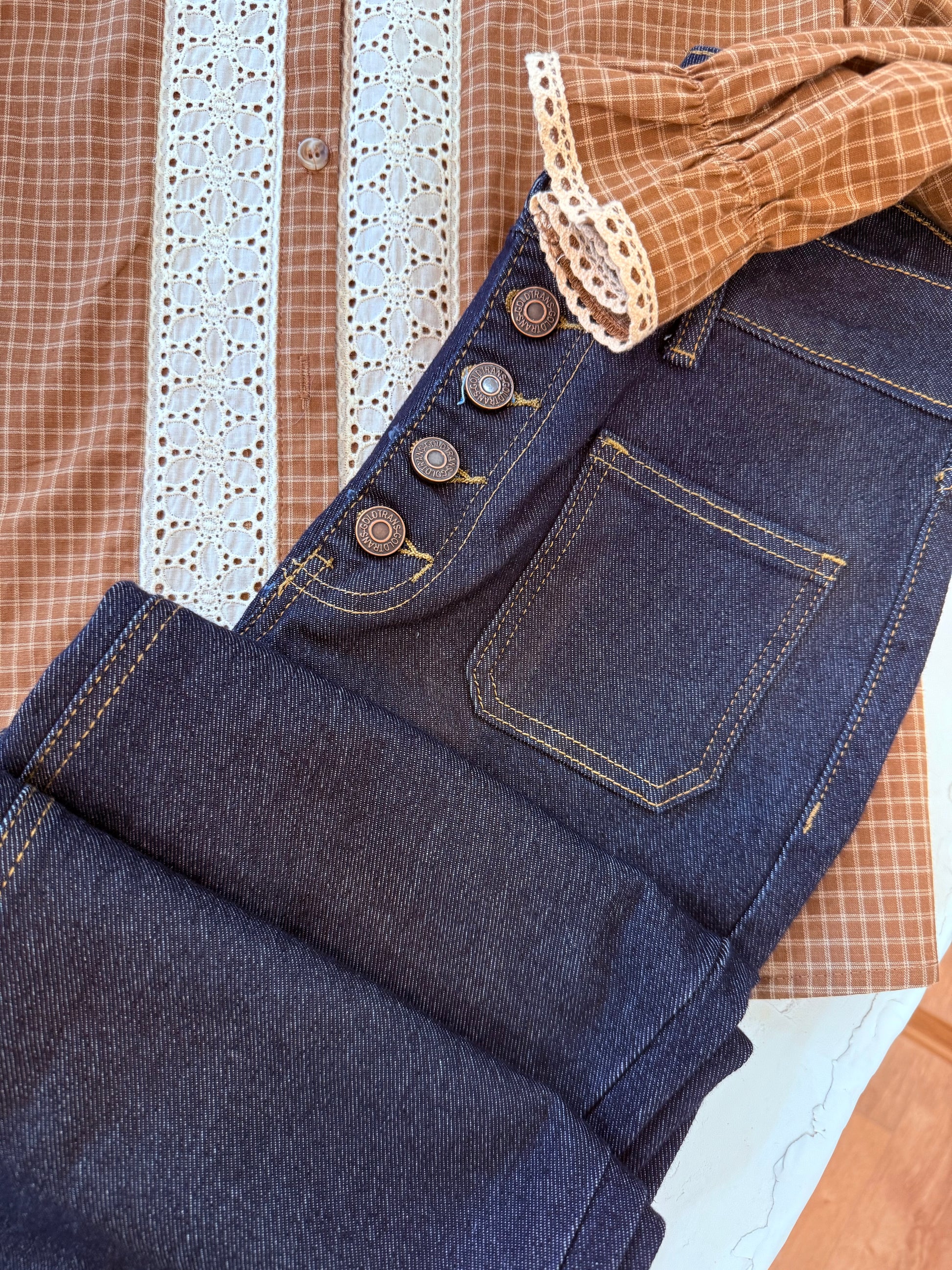 - Tissu : jean brut légèrement stretch pour plus de confort