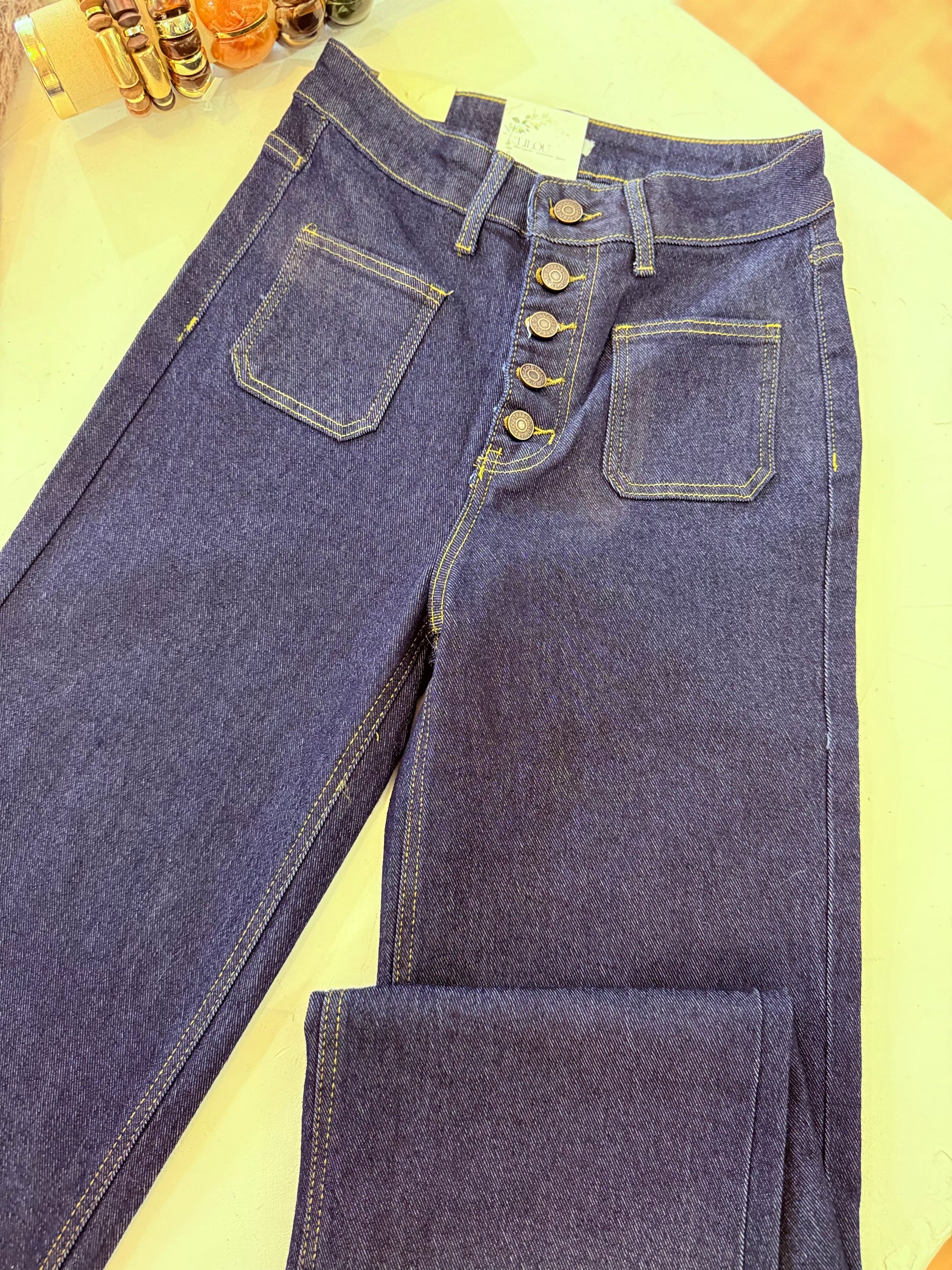Son esprit vintage, sa taille haute ultra flatteuse et sa couleur indigo parfaite pour toutes les saisons.