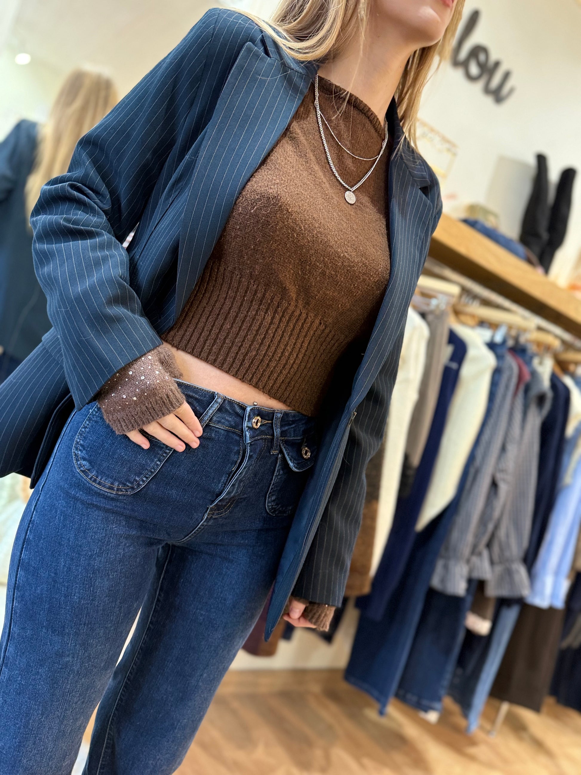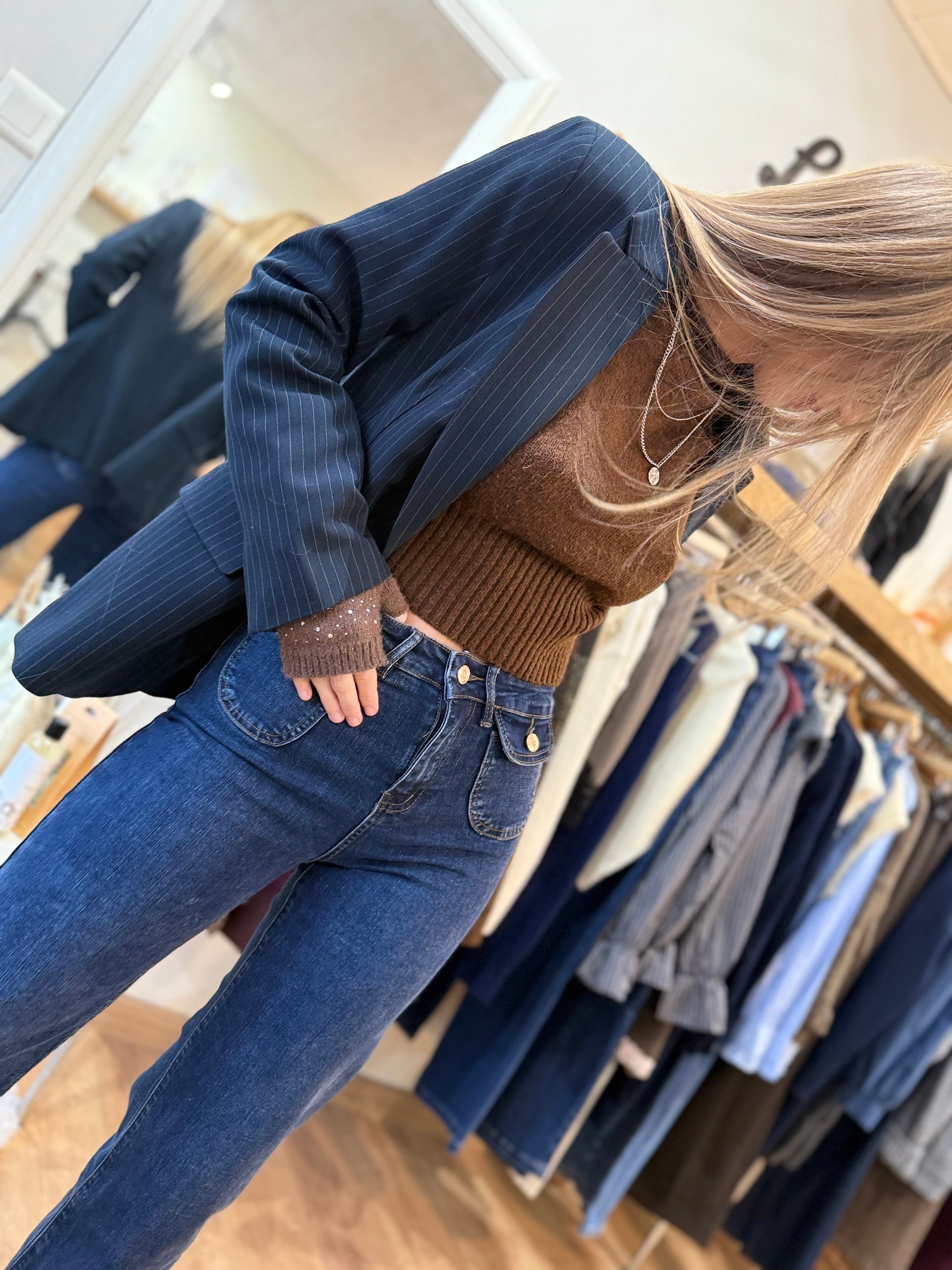 Confectionné dans un denim souple avec une touche d’élasthanne, il épouse les formes sans comprimer. Sa taille bien placée et ses détails soignés en font un jean idéal aussi bien avec une maille qu’un blazer pour un look chic décontracté.
