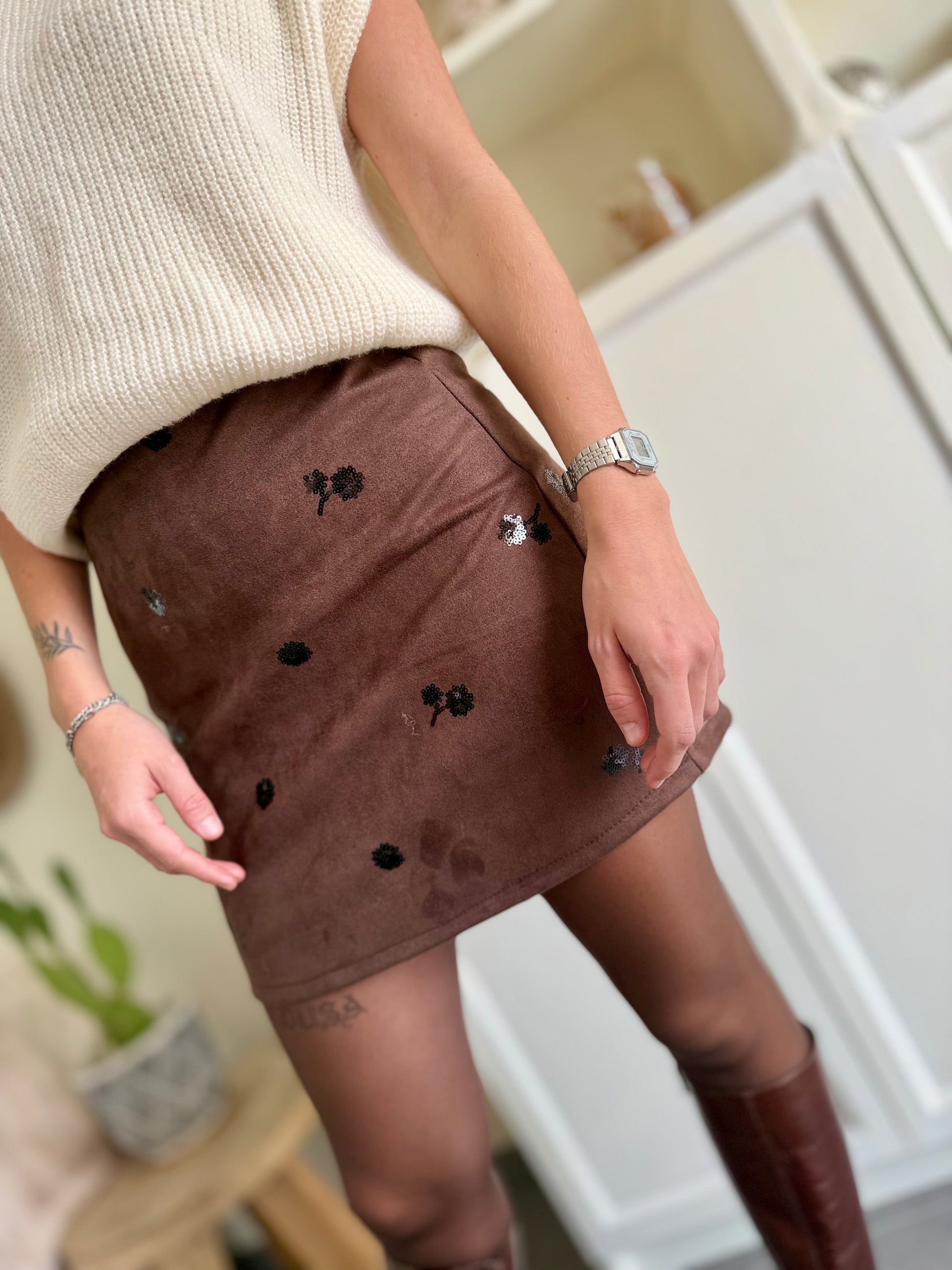- Jupe courte couleur chocolat