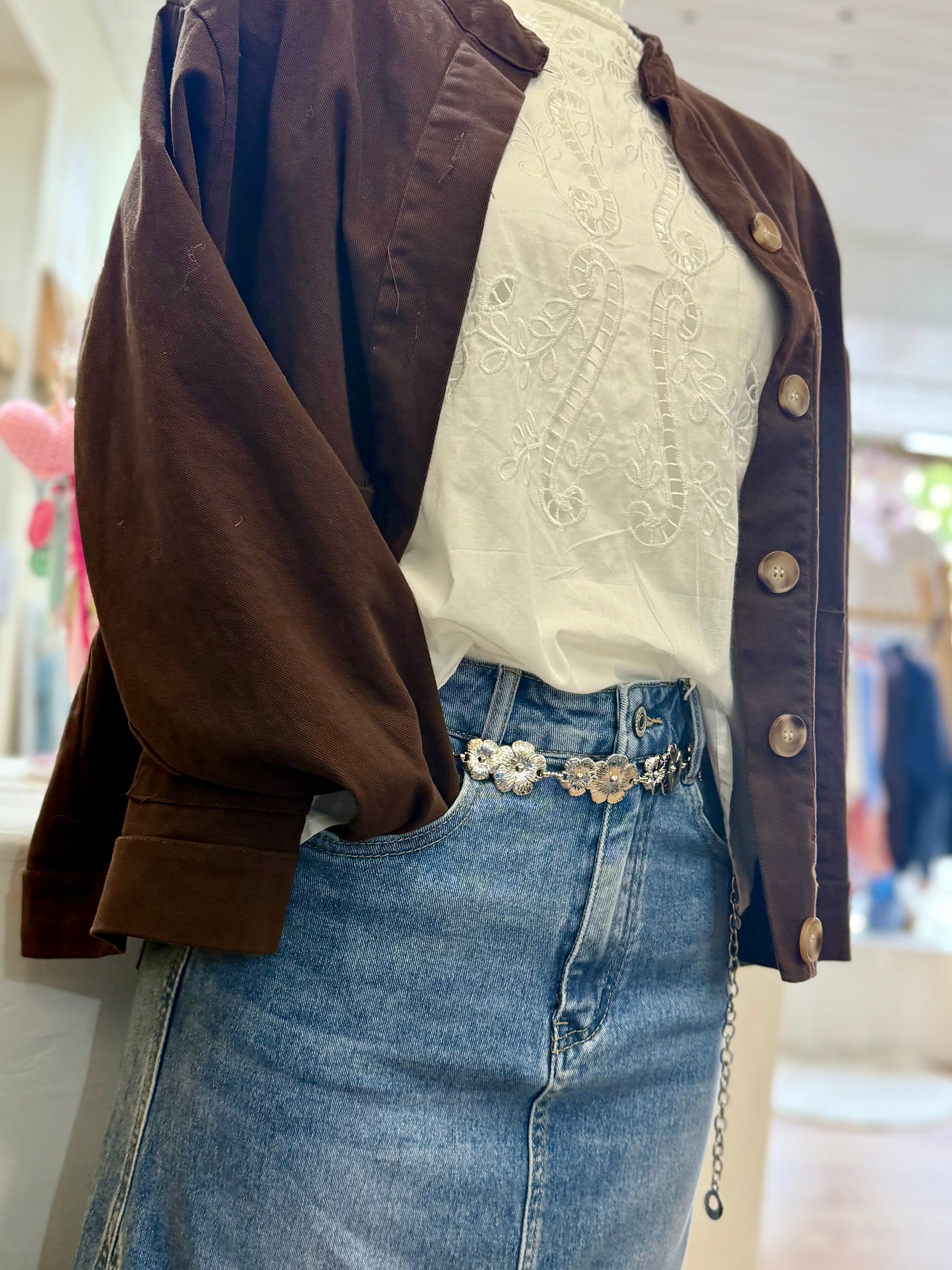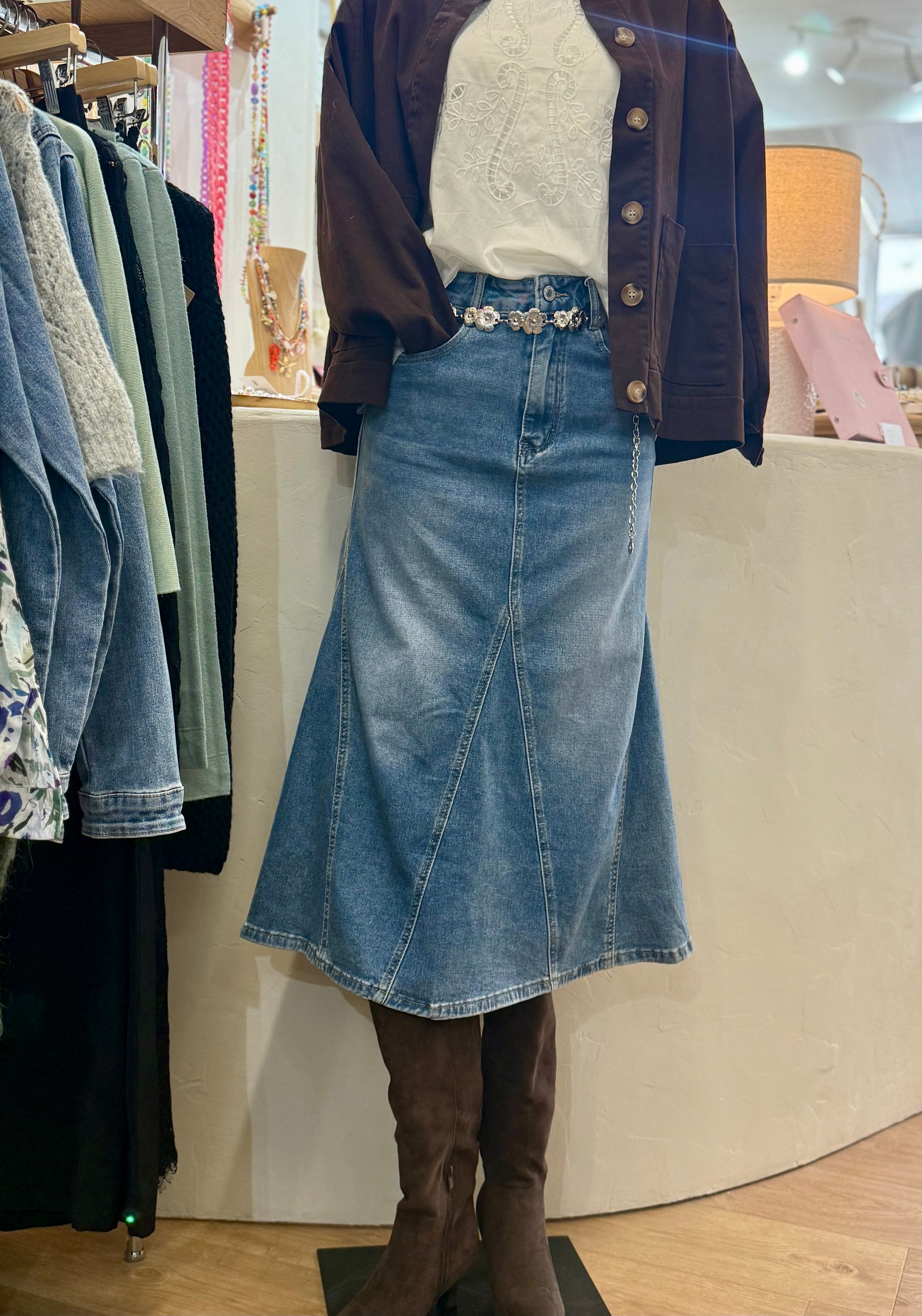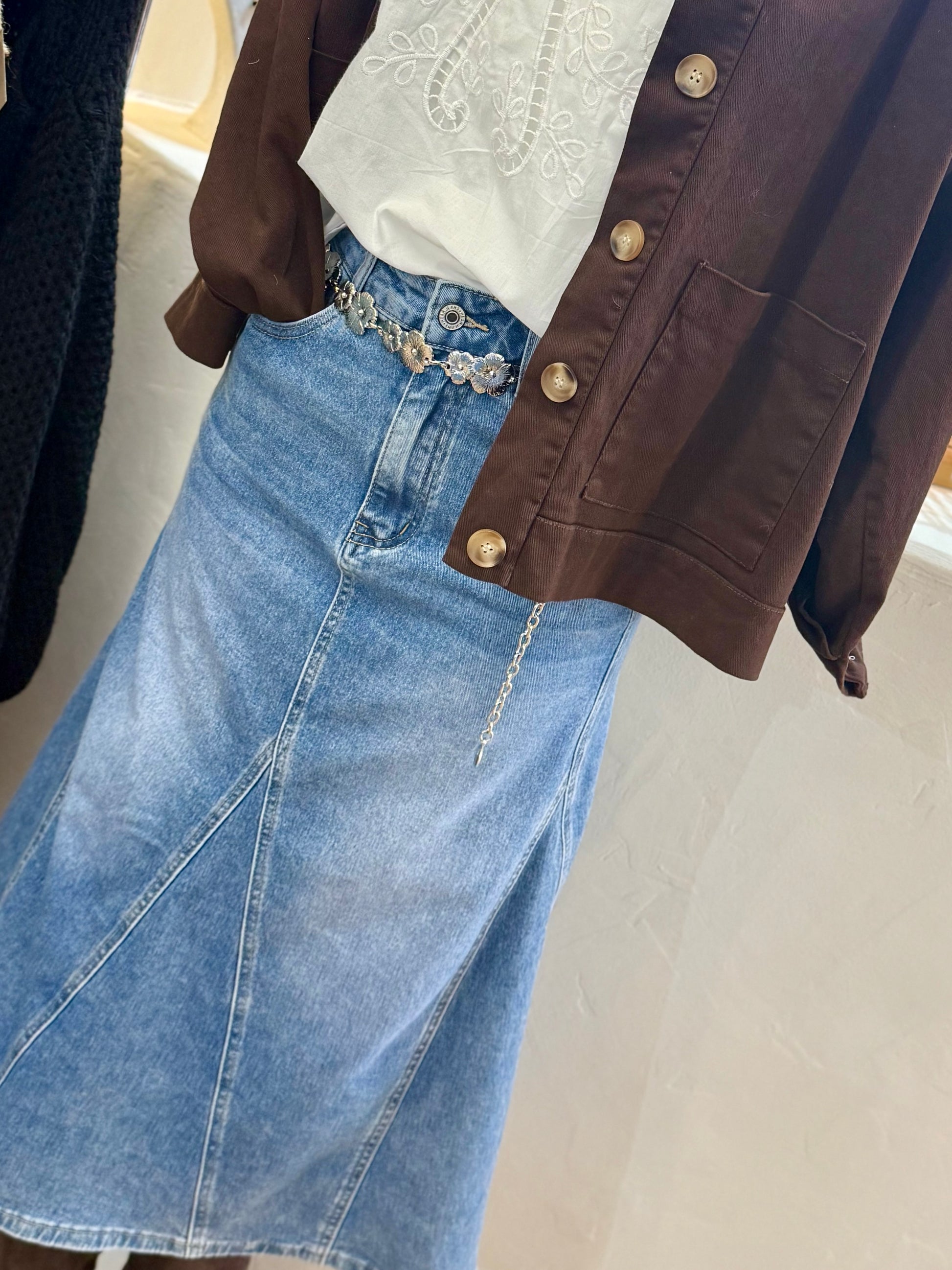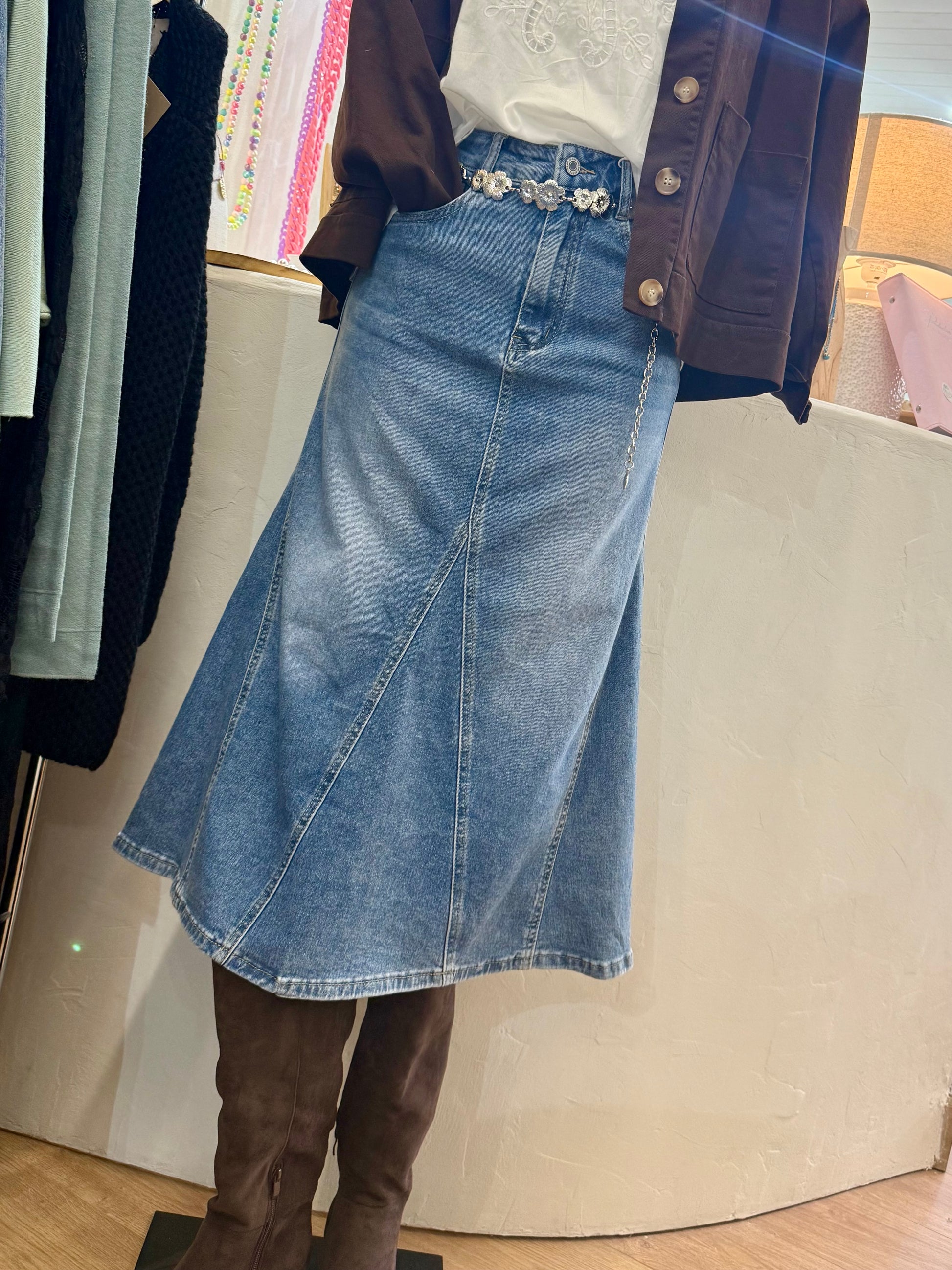 Nathalie. M Jupe agréable découpe bien et belle couleur jean