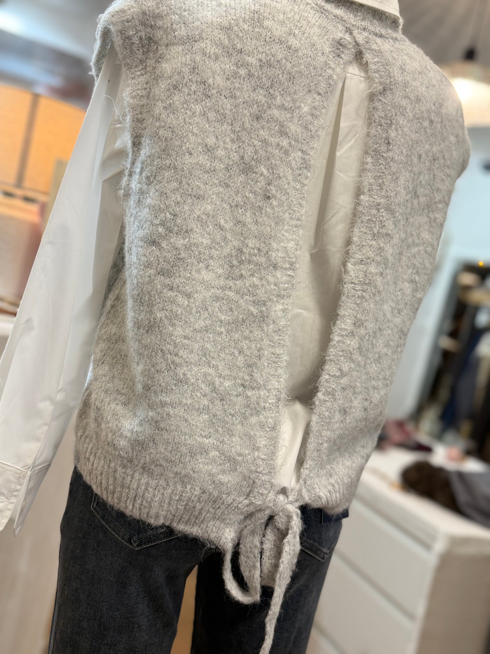 Sa maille moelleuse et légèrement duveteuse apporte une vraie sensation de confort, tout en restant élégante. On craque pour son lien à nouer sur le côté, détail subtil qui structure la silhouette et donne beaucoup de charme à la tenue.