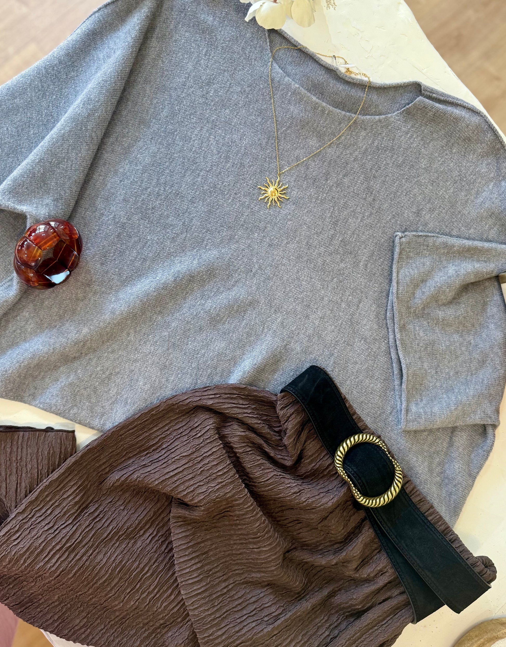 Pull oversize "MILA"- Douceur Italienne gris souris